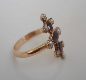 8 Oct 2018 georgian_circa_1800_garnet_seed_pearl_15ct_gold_lace_pin_conversion_ring2 by antiquejewellerybox | | 0