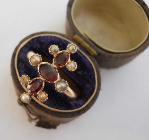 8 Oct 2018 georgian_circa_1800_garnet_seed_pearl_15ct_gold_lace_pin_conversion_ring10 by antiquejewellerybox | | 0