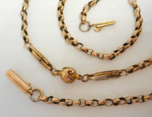 Antique 9ct gold belcher chain and ball necklace, circa 1900