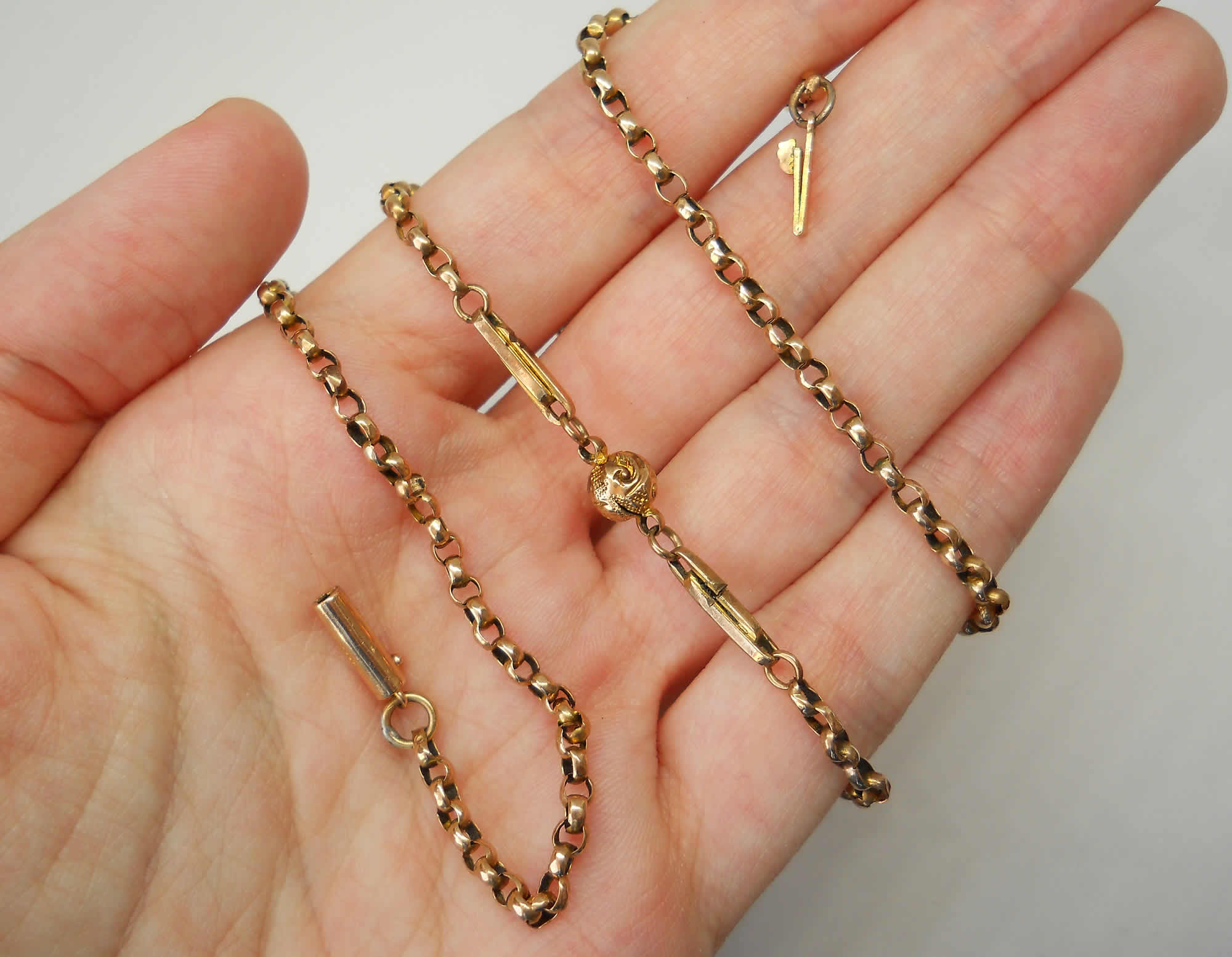 Antique 9ct gold belcher chain and ball necklace, circa 1900