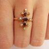 Georgian flat cut garnet and seed pearl lace pin conversion ring
