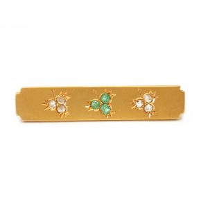 antique_15ct_gold_diamond_emerald_trefoil_bar_brooch